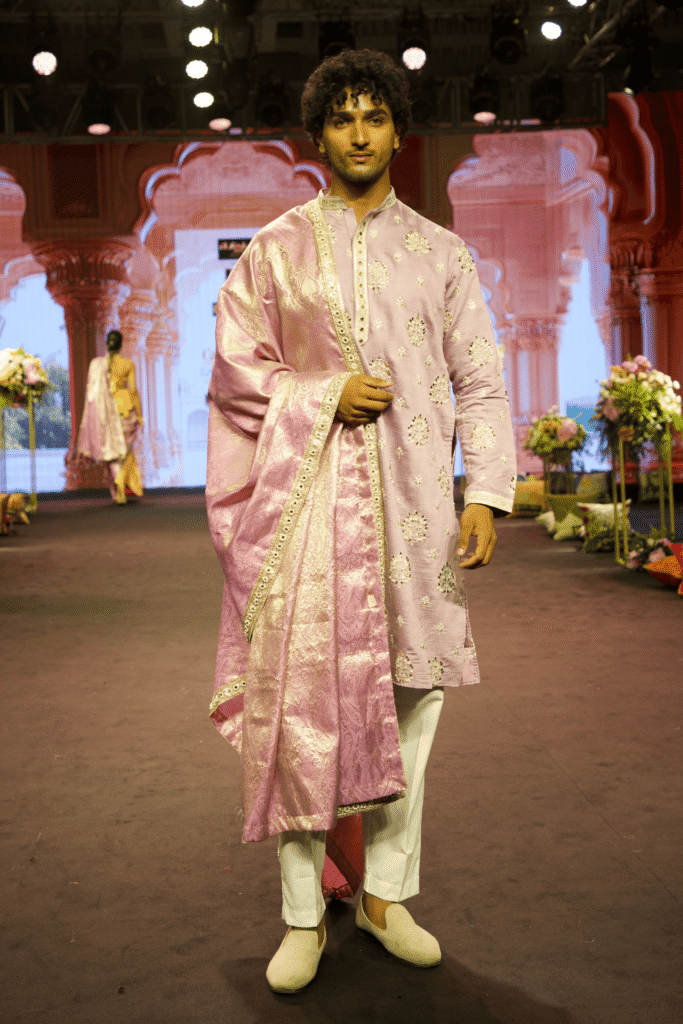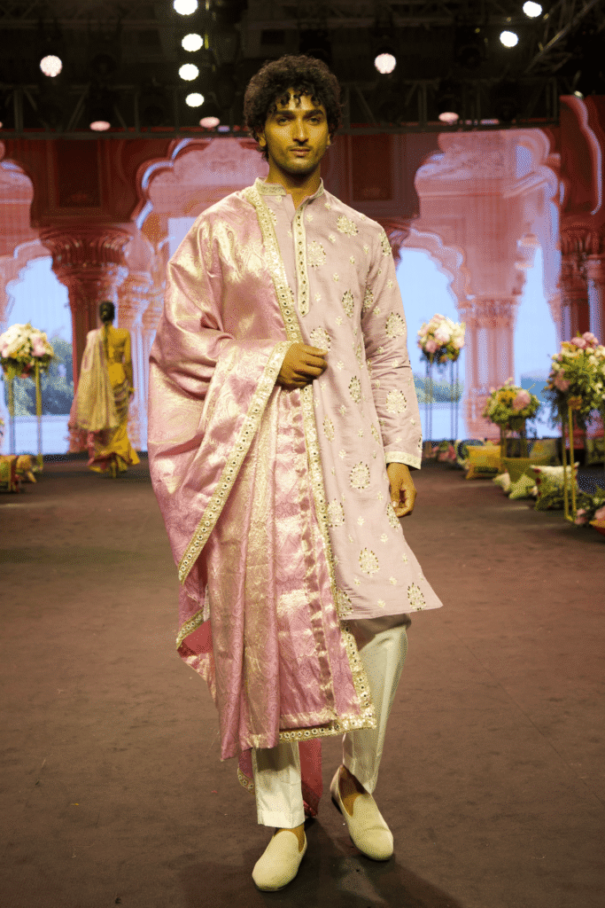 The Rehmaan Kurta Set is a graceful blend of traditional craftsmanship and modern elegance, designed for men who appreciate refined festive wear. Rendered in a soft blush pink tone, this kurta set reflects understated luxury while maintaining a timeless aesthetic.